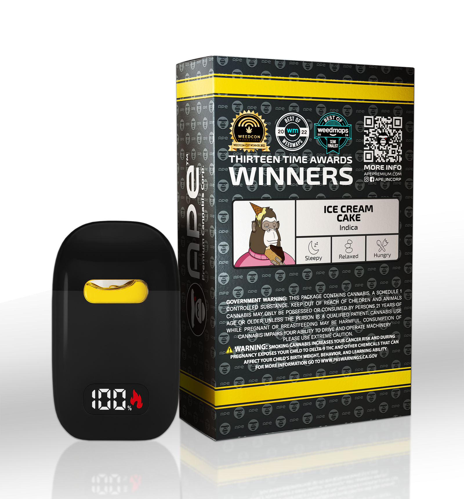 The Ice Cream Cake – 2g Live Resin Disposable Vape | APE is designed for users who enjoy dessert-inspired cannabis flavors paired with deeply relaxing effects. This disposable vape pen is filled with live resin, a premium concentrate made from freshly harvested cannabis that is flash-frozen to preserve its natural terpene profile and cannabinoid integrity. This process results in a more aromatic, flavorful, and full-spectrum vaping experience.